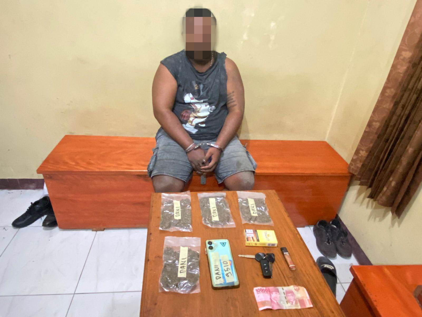 Dalam operasi tersebut, petugas berhasil mengamankan dua pemuda masing-masing berinisial Riz (23) dan Dani (23). Dari keduanya, polisi menyita total 8 bungkus besar plastik bening berisi daun ganja kering, sejumlah telepon genggam, dua unit sepeda motor, uang tunai dan berbagai barang pribadi lainnya. Seluruh barang bukti dan para terduga kini sudah diamankan di Polsek Skanto untuk proses hukum lebih lanjut.
