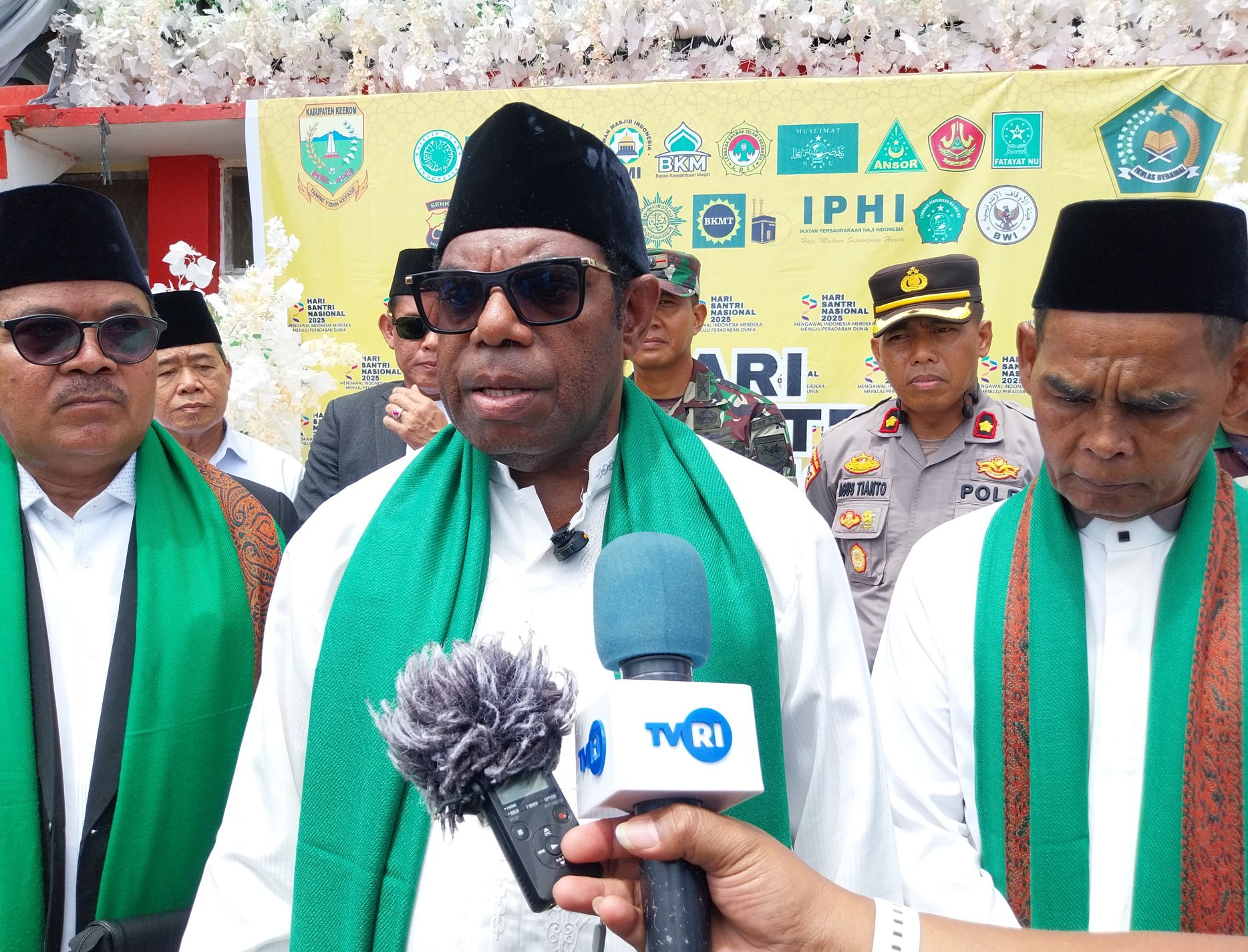 Bupati Piter Gusbager pada lesempatan itu mengucapkan selamat merayakan Hari Santri Nasional ke X tahun 2025 di Kabupaten Keerom.