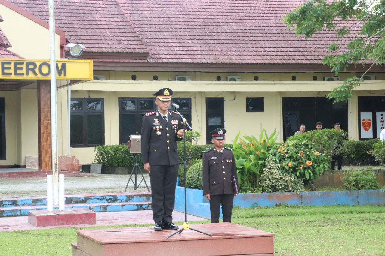 Keerom – Pimpin Upacara Peringatan Hari Lahir Pancasila, Kapolres Keerom AKBP Astoto Budi Rahmantyo, S.H.,S.I.K.,M.H Ajak seluruh Personel Memperkokoh Ideologi Pancasila, Senin (02/06/2025).