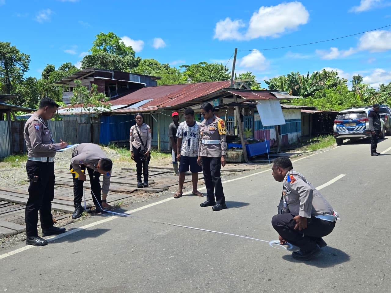 Sat Lantas Polres Keerom Laksanakan Olah TKP Kecelakaan Di Senggi